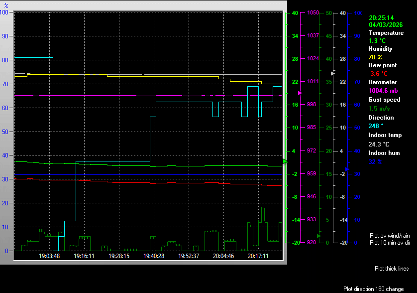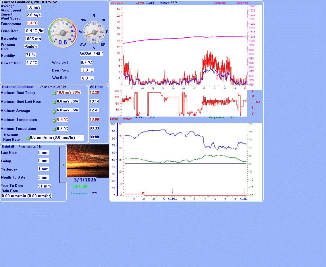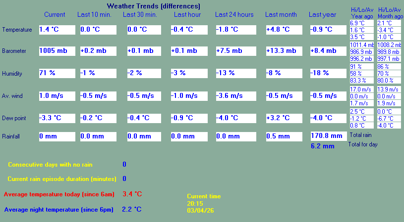 | Yesterdays rainfall | 1.0 mm | DewPoint | -1.7°C (Wet Bulb :-3.6°C ) |