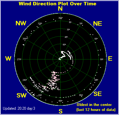 | Maximum Gust (since midnight) | 10.8 m/s at: 12:28 | Maximum 1 minute average (since midnight) | 6.8 m/s at: 12:41 |