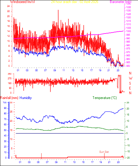 | Windchill Temperature | 1.1°C | Maximum Gust (last hour) | 0.0 m/s at: 17:39 |